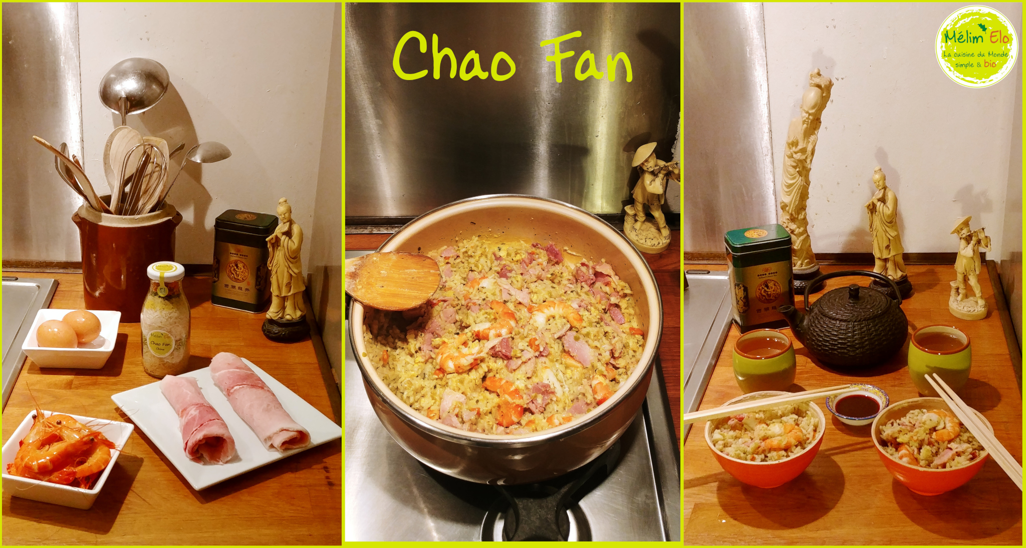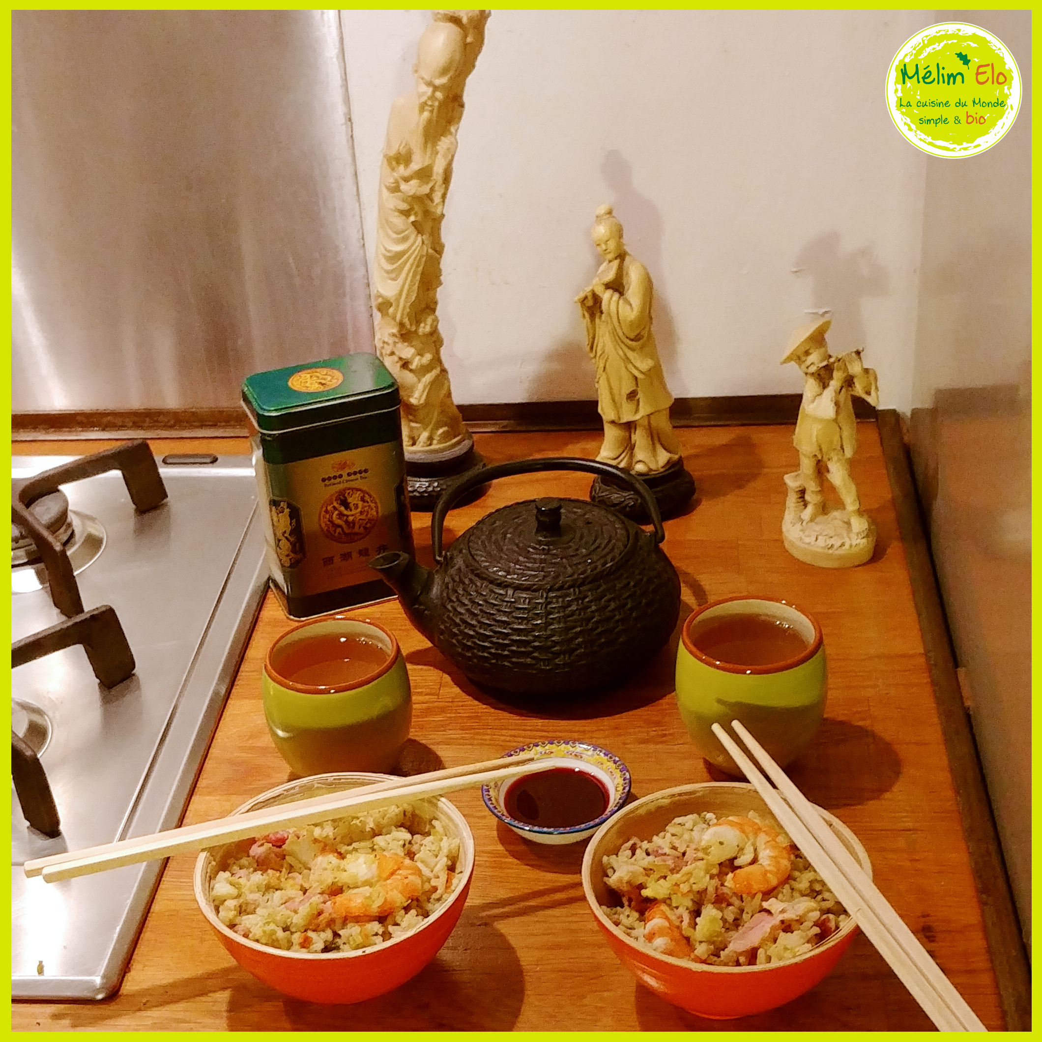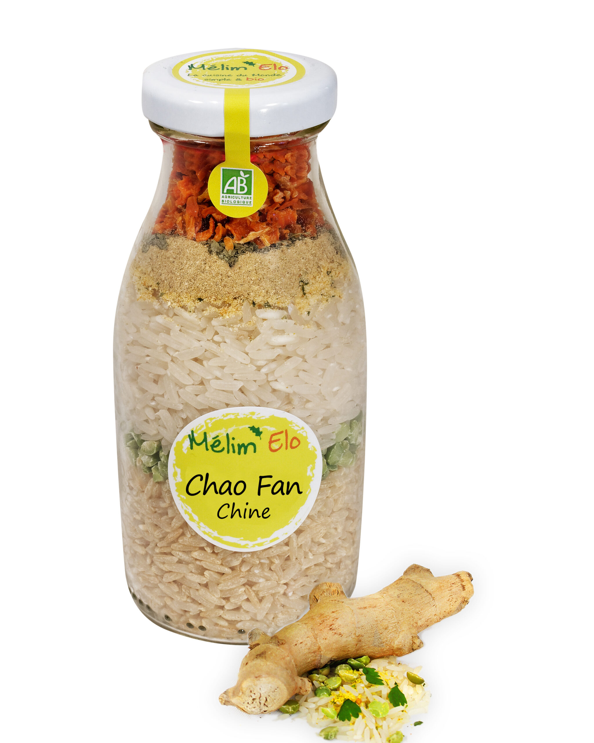 Avec du riz thaï, des pois cassés, des carottes, des oignons, du bouillon de légumes, coriandre, gingembre, citronnelle.