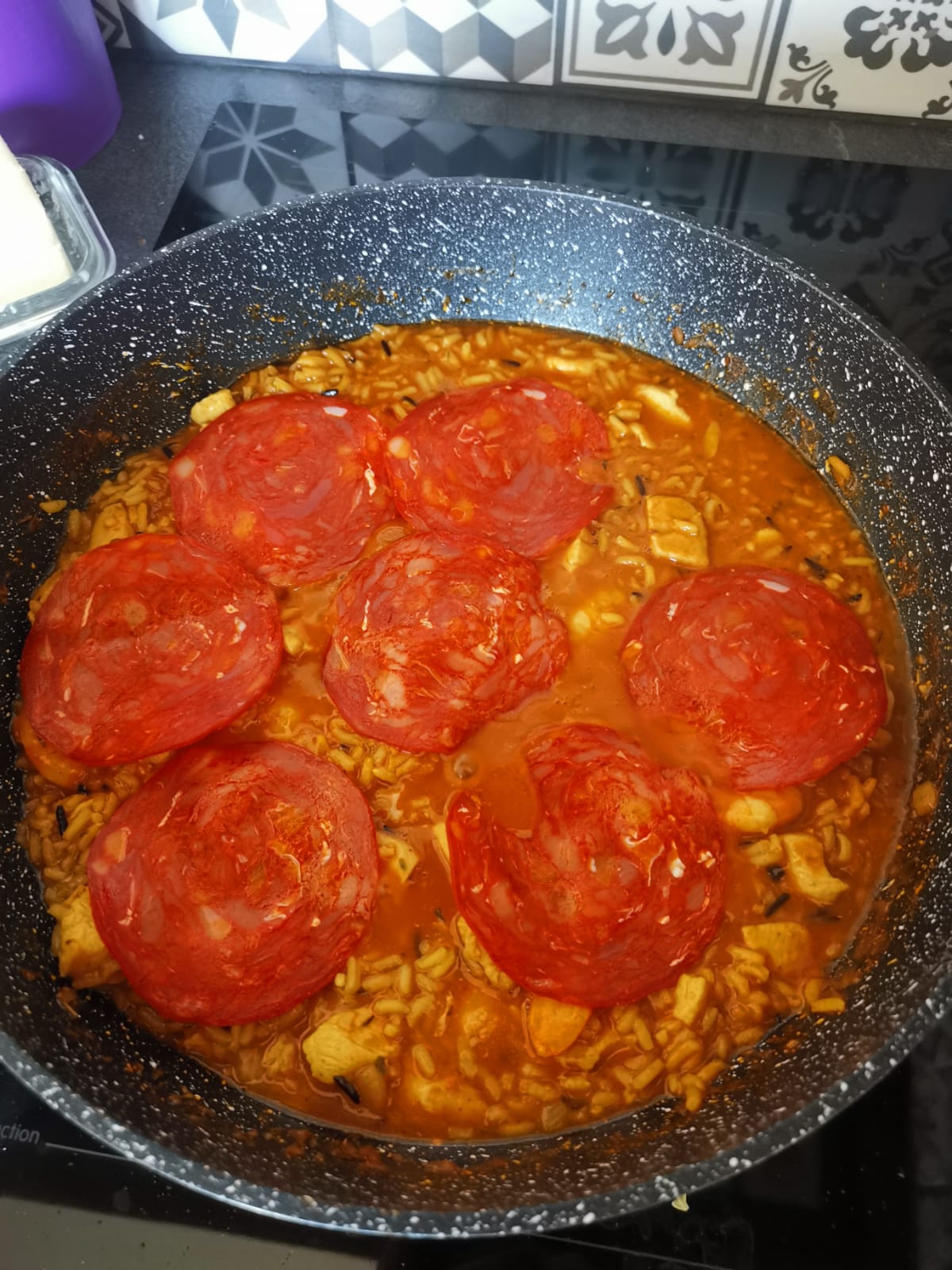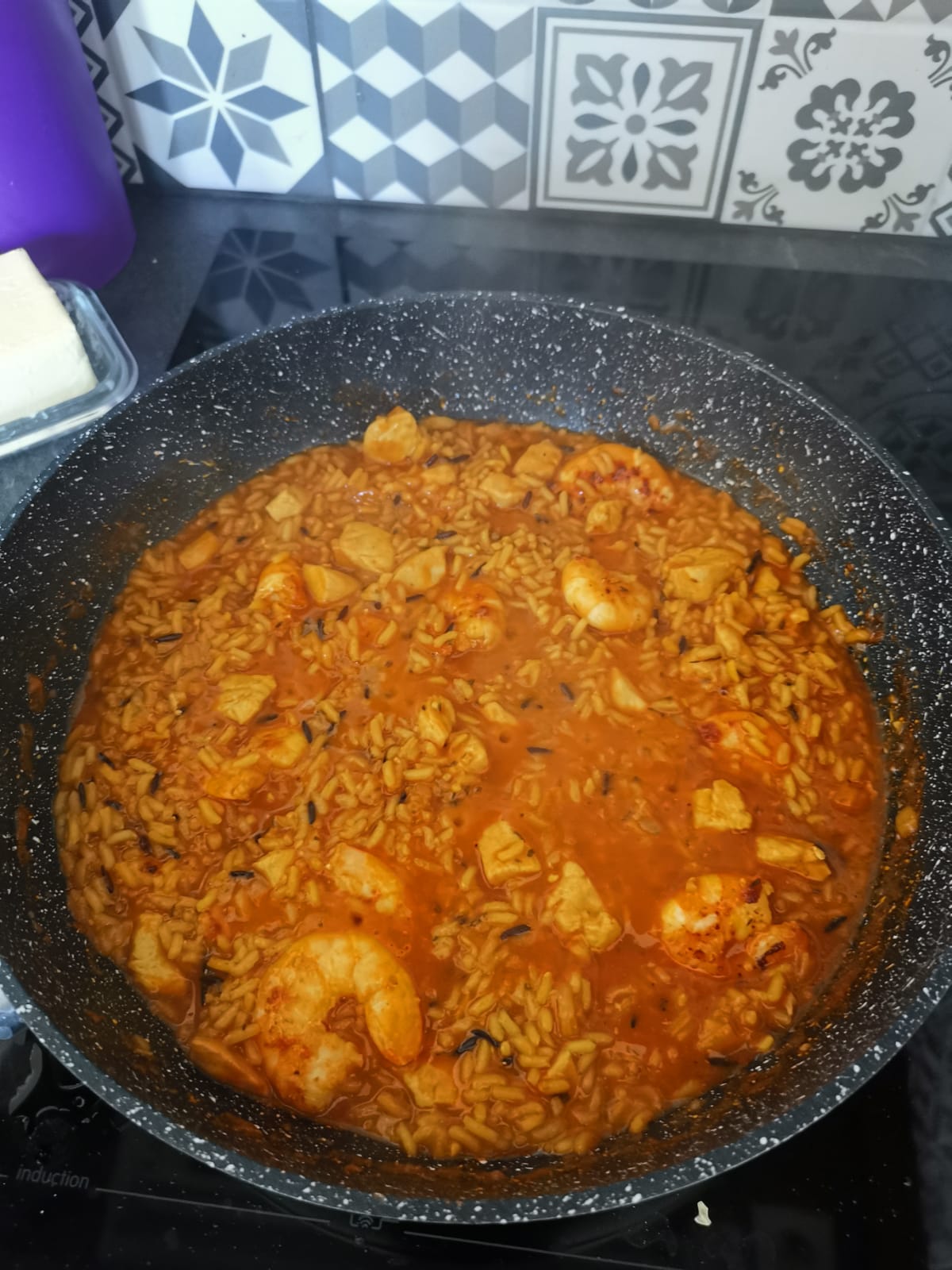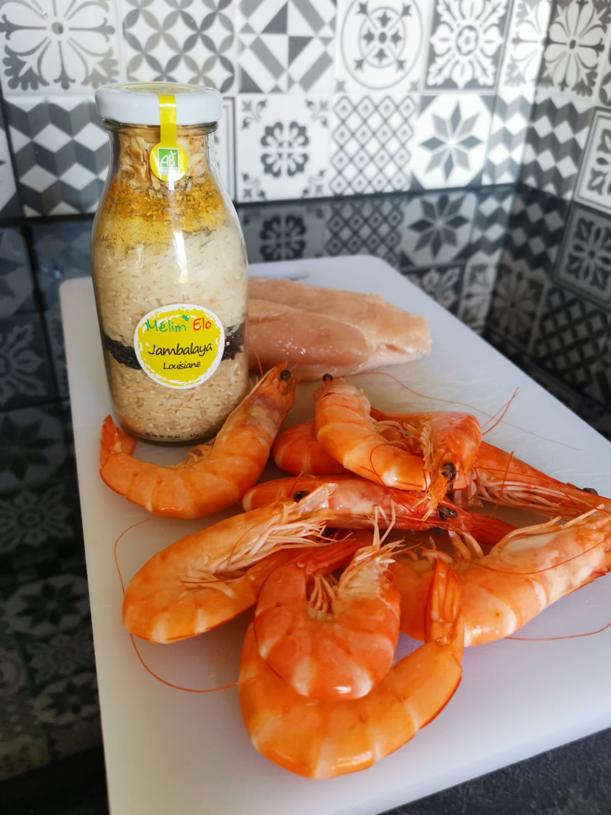Blancs de poulet, Chorizo, Concentré de tomates, Crevettes