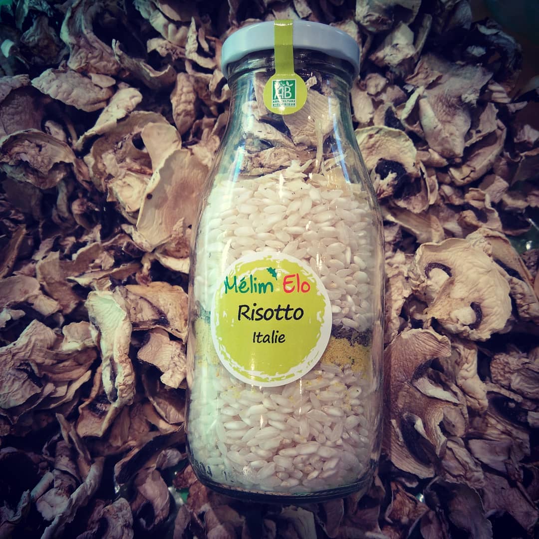 Avec du riz carnaroli et des champignons séchés.